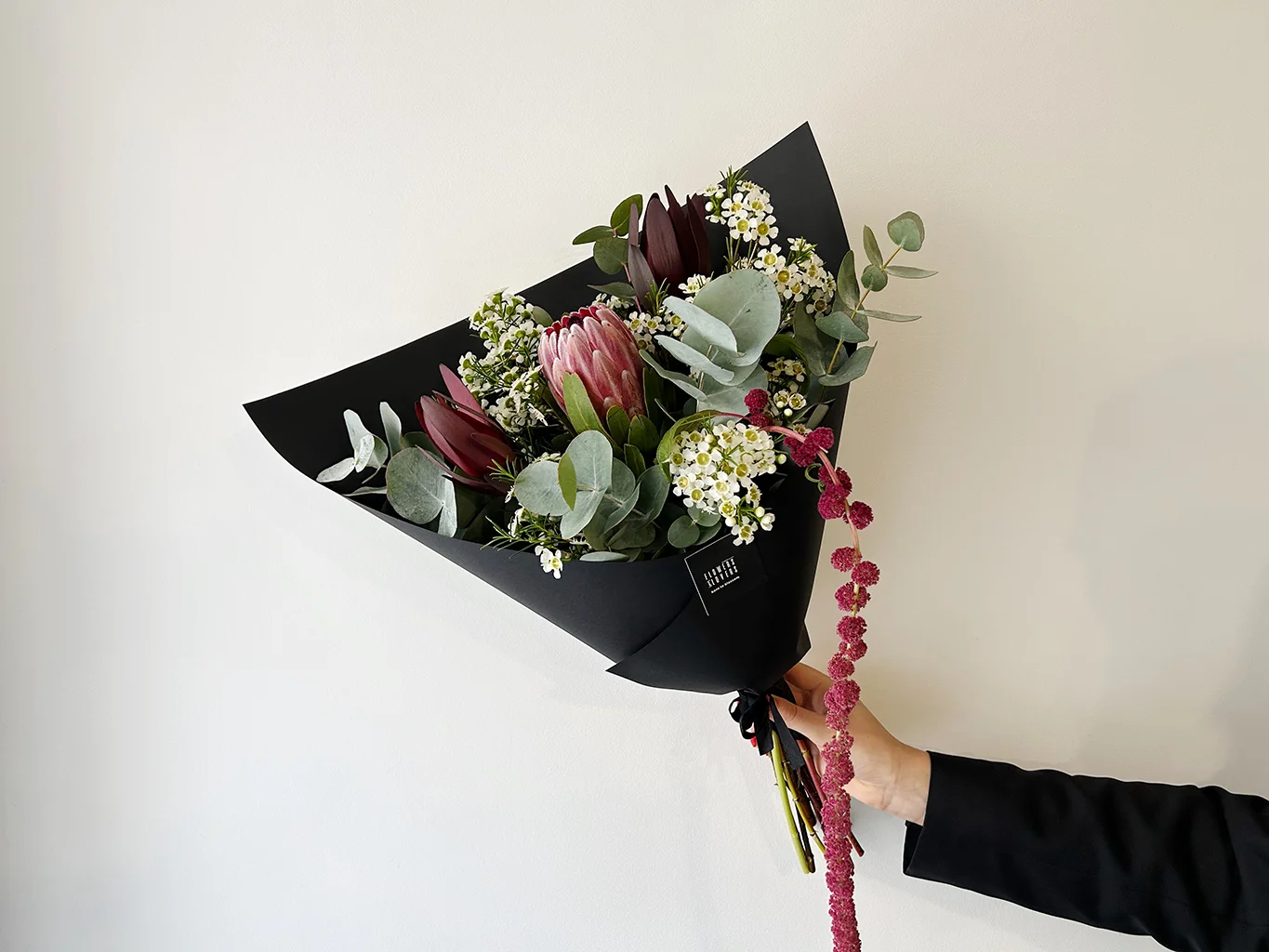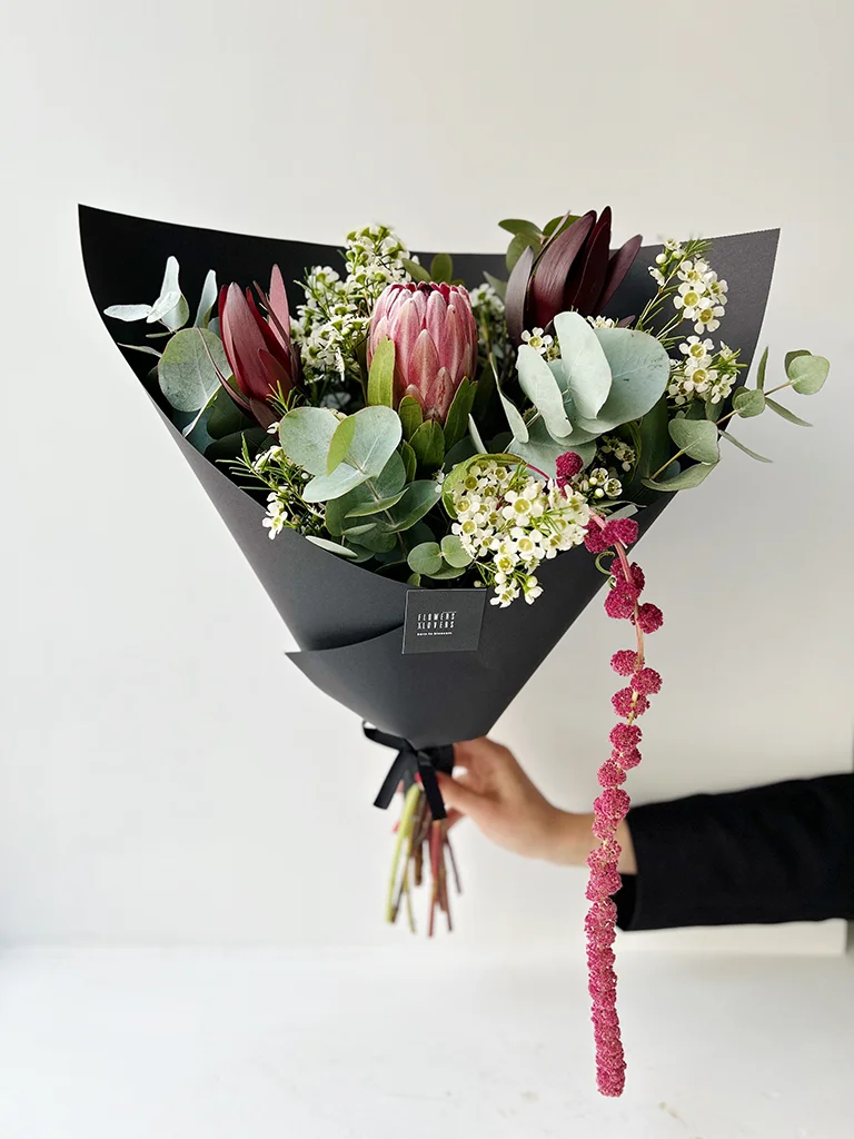 Puokštė susideda iš protėjos, vaškagėlės, eukalipto, leukodendrono ir priklausomai nuo sezono- burnočio (lot. Amaranthus).