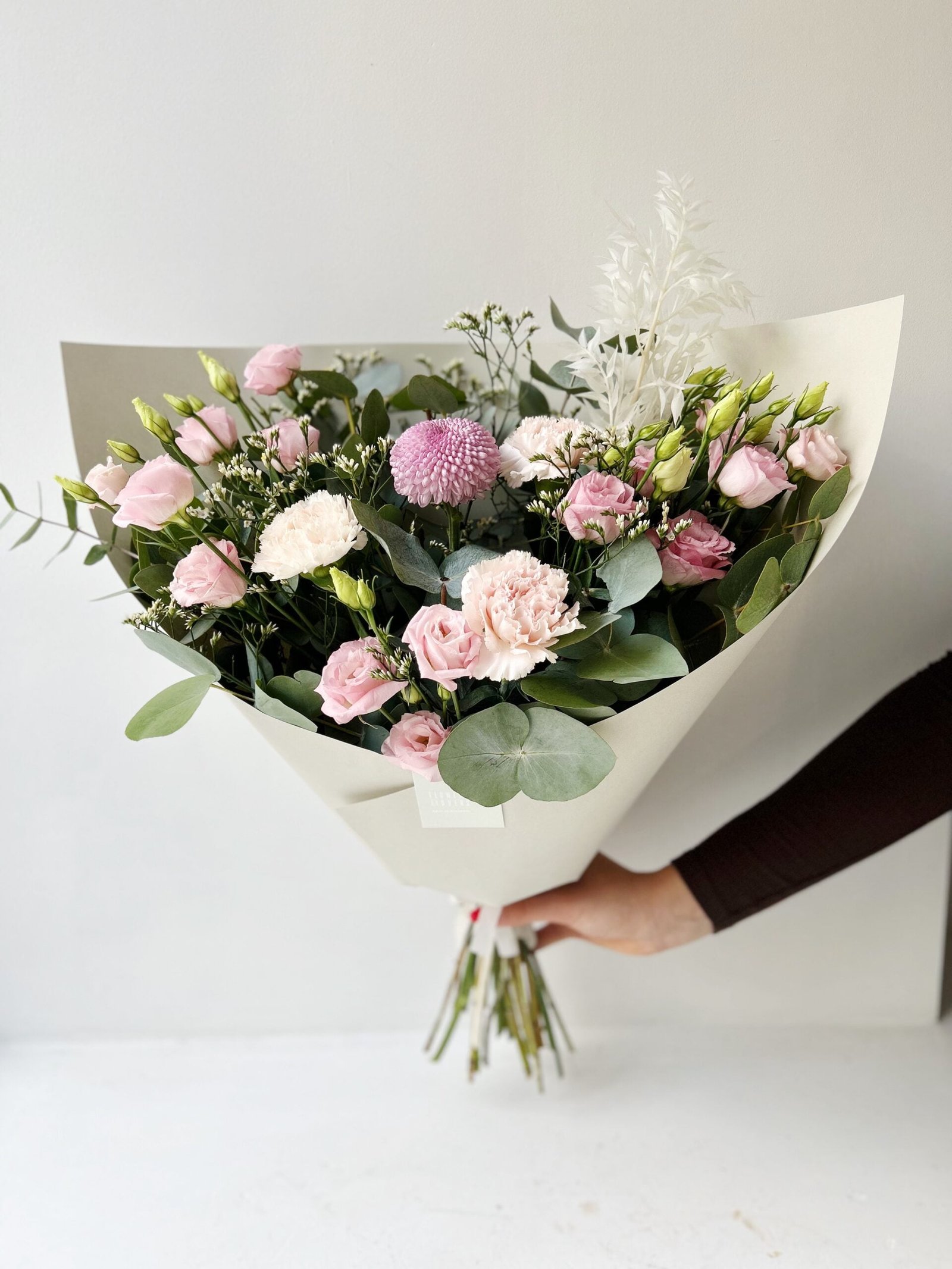 Saldūs, rožiniai, šilti bei meilės kupini romantiški pusryčiai. Gaivi ir lengva kompozicija jausmų neslepiantiems romantikams. Puokštė susideda iš chrizantemos, eustomos, gvazdikų, limoniumo, stabilizuoto ruskuso šakelės ir eukalipto.